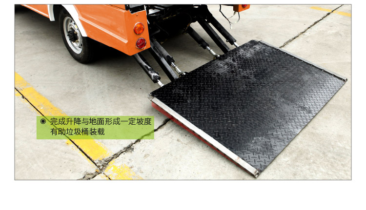 液压尾板全自动化操作,控制满载空载垃圾桶升降,简单方便作业高效。
